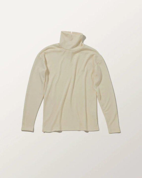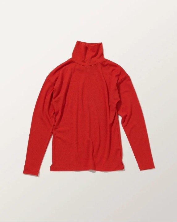肩にシームのないパターン、バックネックのスリットなどコンパクトなサイズながら、1枚でもゆとりを感じられるトップスです。
